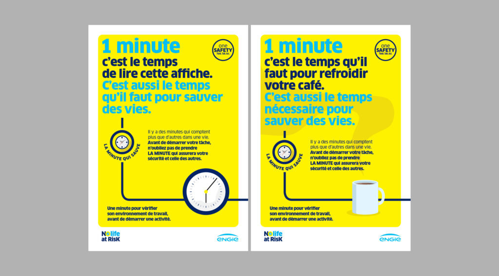 Une minute pour vérifier son environnement de travail, c’est le temps qui peut suffire à sauver des vies ! Campagne culture sécurité.