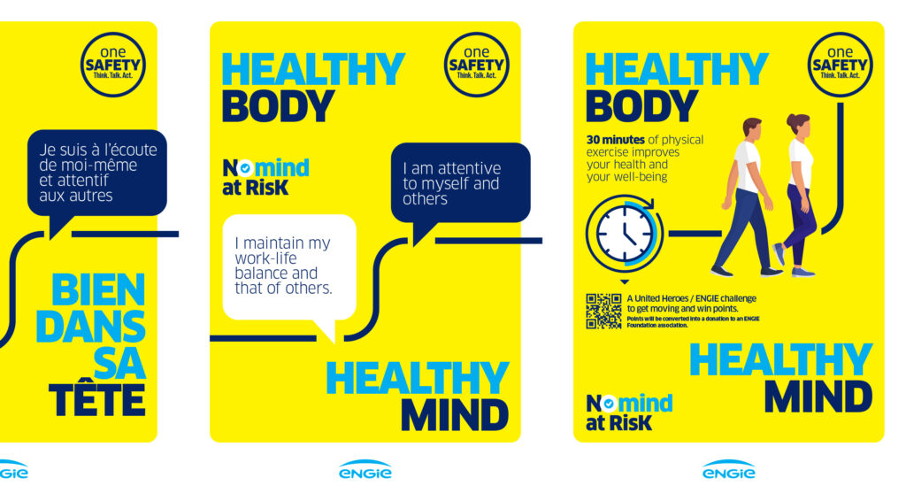 Campagne QVT pour ENGIE mettant l’accent sur l’équilibre vie privée-vie professionnelle et sur l’activité physique régulière.