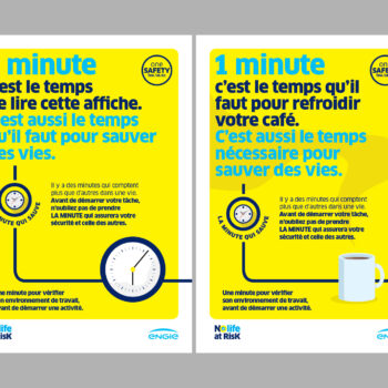 Une minute pour vérifier son environnement de travail, c’est le temps qui peut suffire à sauver des vies ! Campagne culture sécurité.